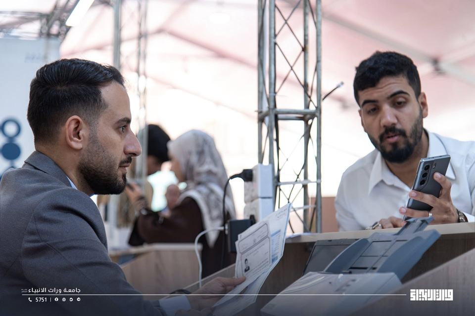 The University of Warith Al-Anbiyaa, through its Registration Department team, continues to welcome prospective students and their families, providing them with the necessary support to complete all stages of the application process for the University’s colleges and departments. This initiative reflects the University’s commitment to ensuring a smooth and comprehensive experience that facilitates equitable access to higher education.