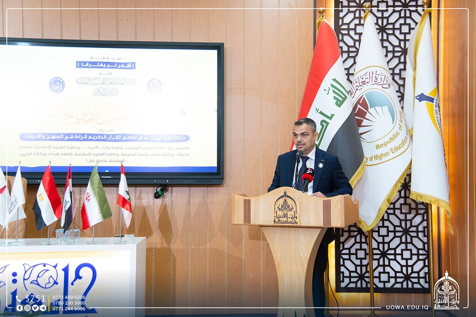The Holy Quran Center at the Holy Shrine of Imam Hussein, in collaboration with the College of Islamic Sciences at the University of Warith Al-Anbiyaa (peace be upon him), and the Colleges of Islamic Sciences at the universities of Baghdad, Babel, and Kufa, organized the "Fifth International Conference of Imam Hussein (peace be upon him)."