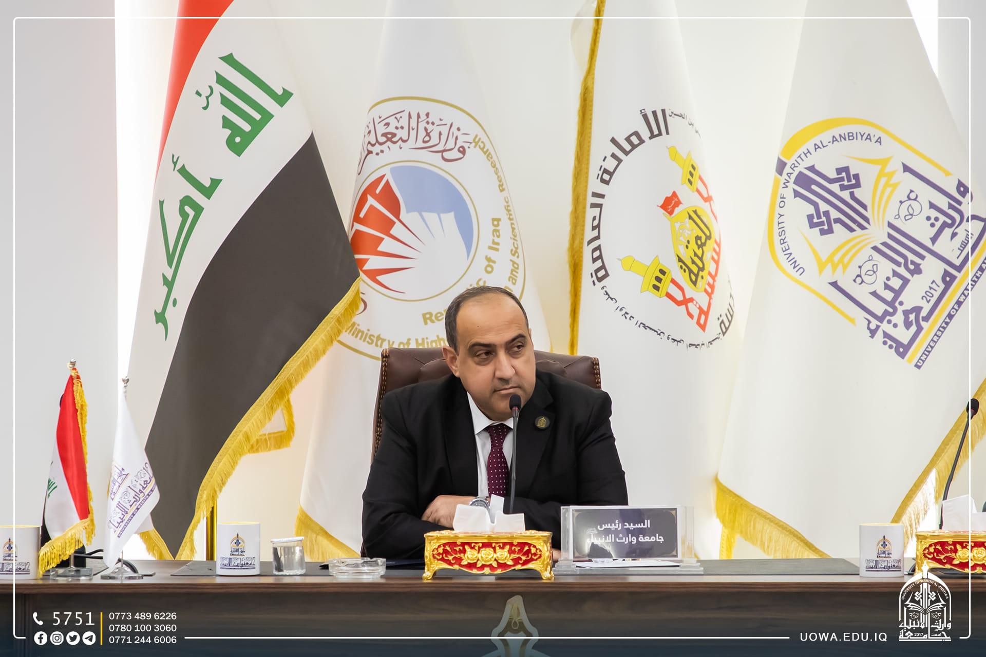 The University of Warith Al-Anbiyaa (peace be upon them) held its regular council session under the presidency of Professor Dr. Ibrahim Al-Hayawi. The meeting was attended by the vice presidents of the university for administrative and academic affairs, as well as the deans of the colleges.