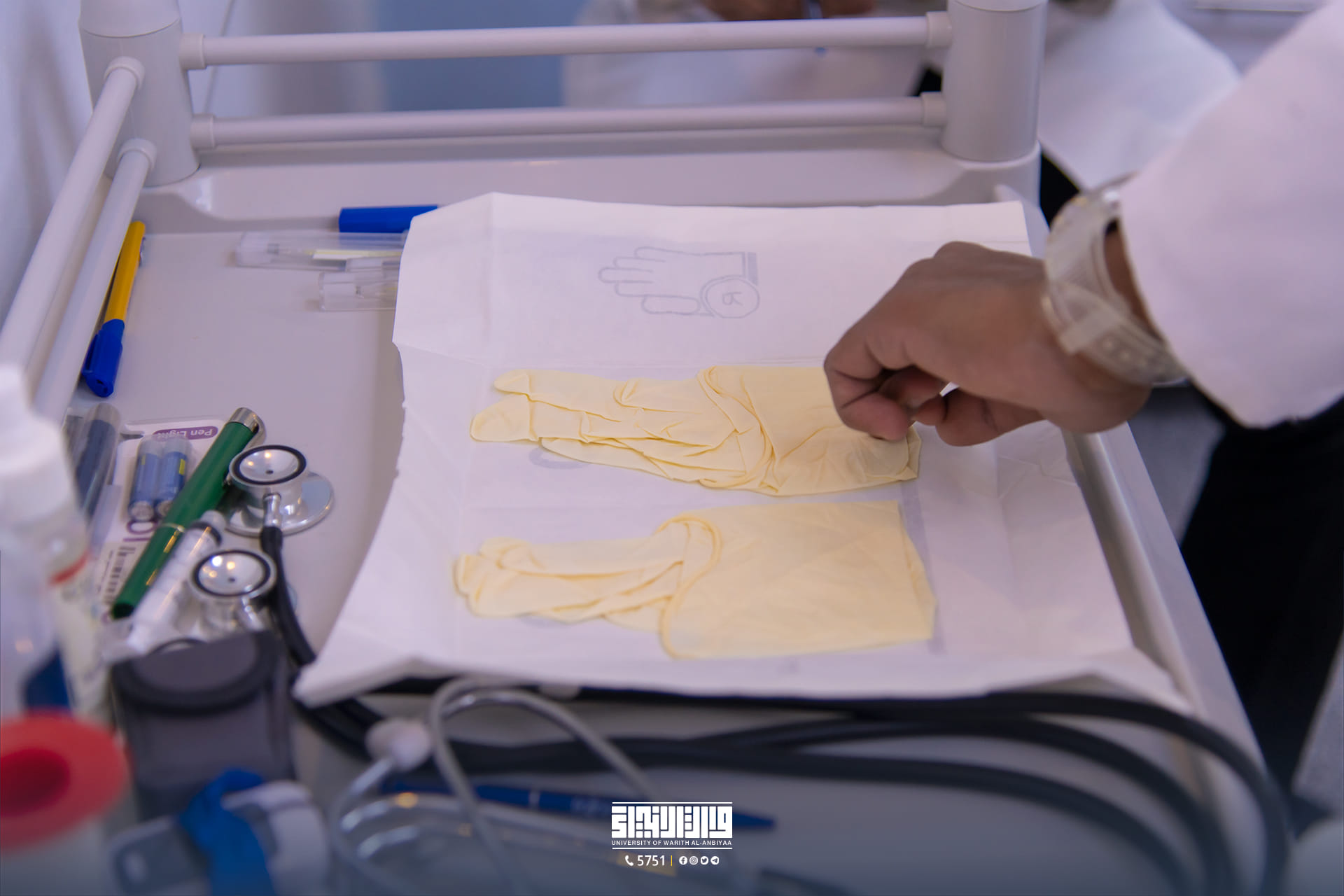 Under the supervision of the College Dean, Dr. Murtadha Al-Jubouri, first-year students at the College of Nursing at the University of Warith Al-Anbiyaa (peace be upon him) are taking the "First Semester" exam for the current academic year at the Laboratories at the National Center for Medical Competency Assessment.