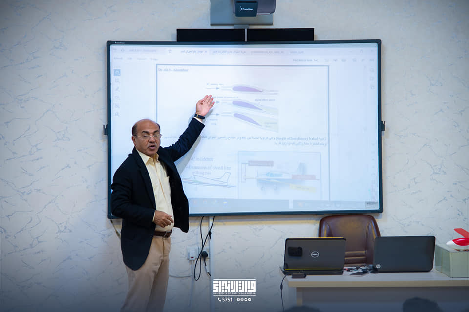 The Aircraft Engineering Department at the College of Engineering organized a scientific workshop for first-year students on "Principles of Aeronautics" and Aircraft Components. The workshop covered essential topics for aircraft engineers, including aircraft structure designs, aircraft engines, aerodynamics, air dynamics, aircraft control and stability, electric and mechanical aircraft systems, maintenance, and fundamental engineering subjects.