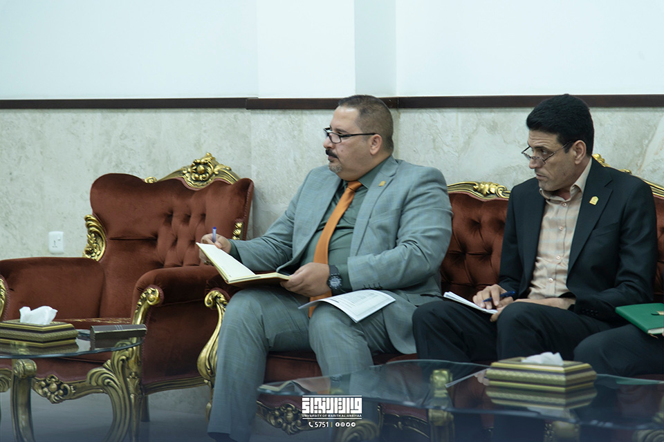 Professor Dr. Basem Al-Saeedi, the president of the University of Karbala, was met by Professor Dr. Ibrahim Al-Hayawi, the president of the university.