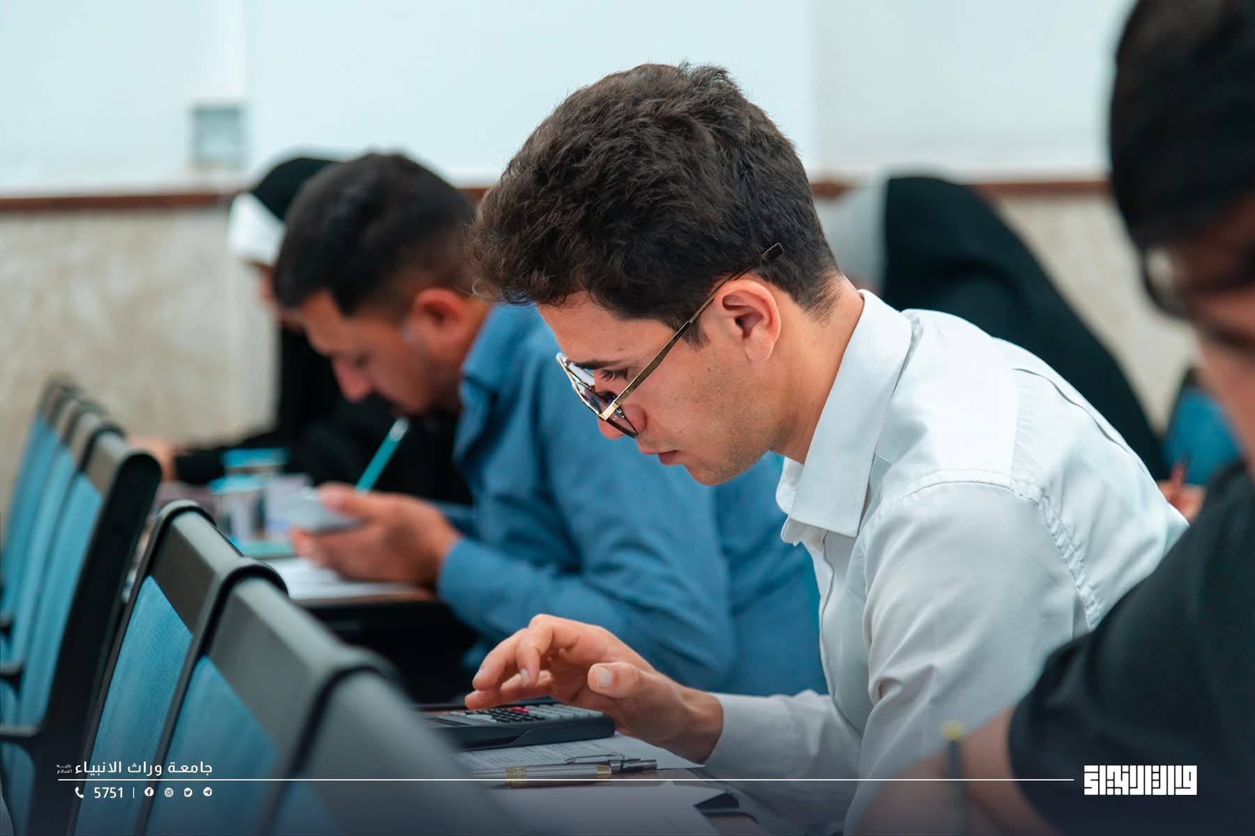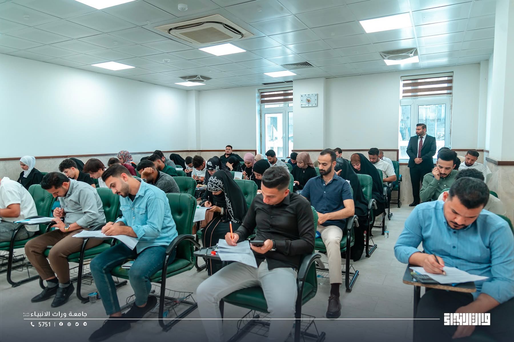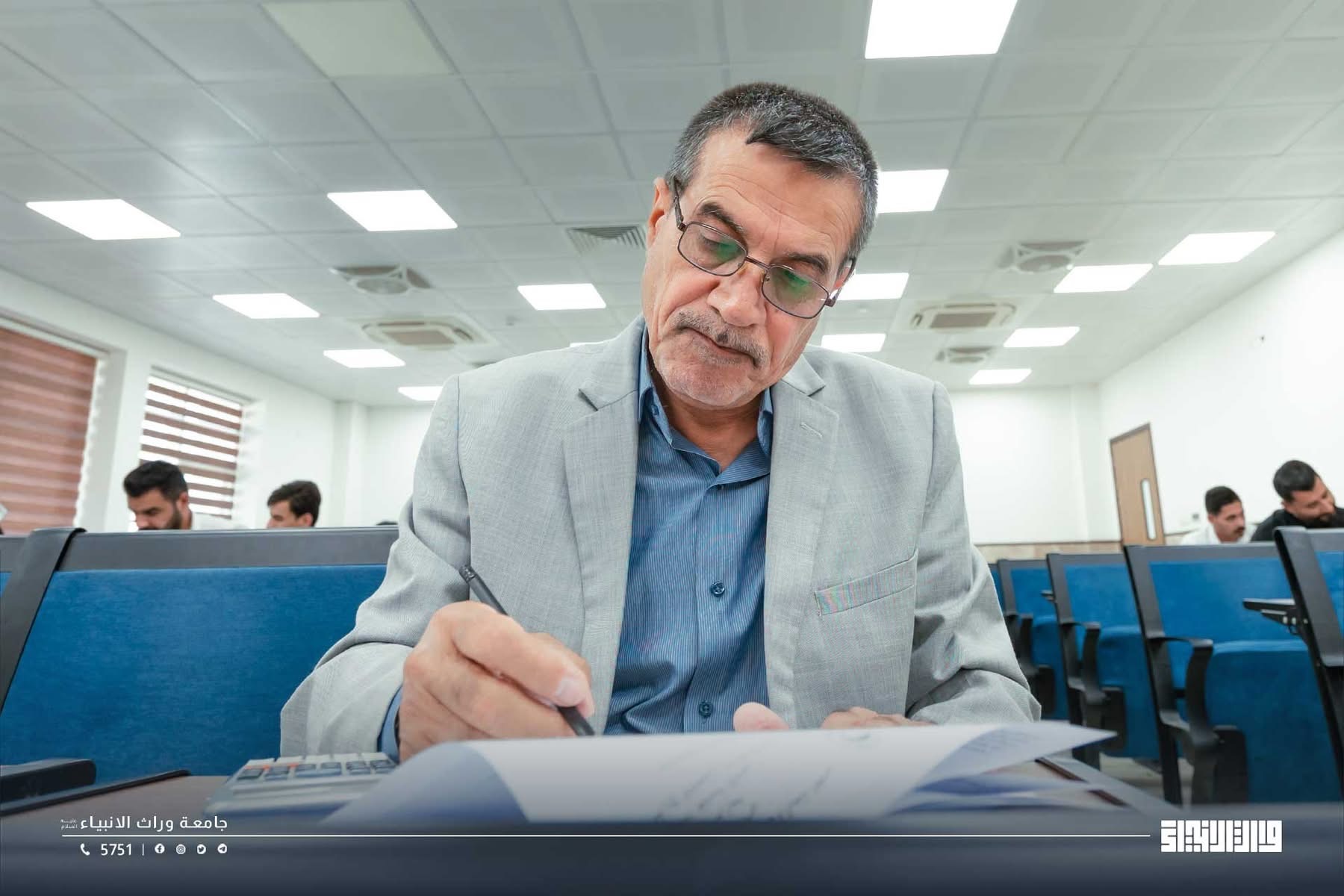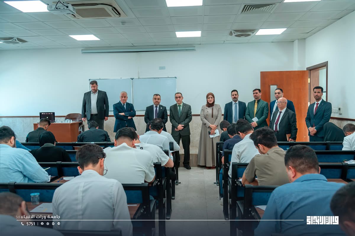 A glimpse of the final examinations at the College of Administration and Economics / University of Warith Al-Anbiyaa, conducted under the direct supervision of the university presidency, with close follow-up by the Scientific Assistant, Professor Dr. Waqid Al-Moussawi, and with the dedicated support and intensive efforts of the college deanships and examination committees