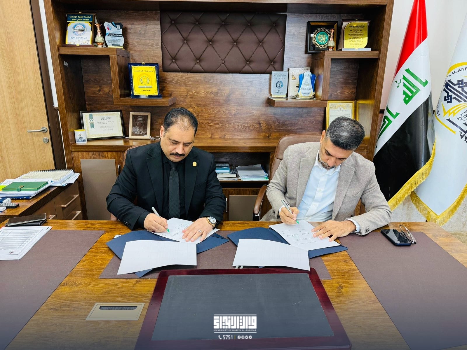 In a step that reflects the commitment of the two universities to strengthen academic cooperation, the Dean of the College of Engineering, Assistant Professor Dr. Hussein Hadi Al-Awadi, signed a scientific twinning agreement with Professor Dr. Haider Nazim Al-Mahanna, Dean of the College of Engineering at the University of Karbala.