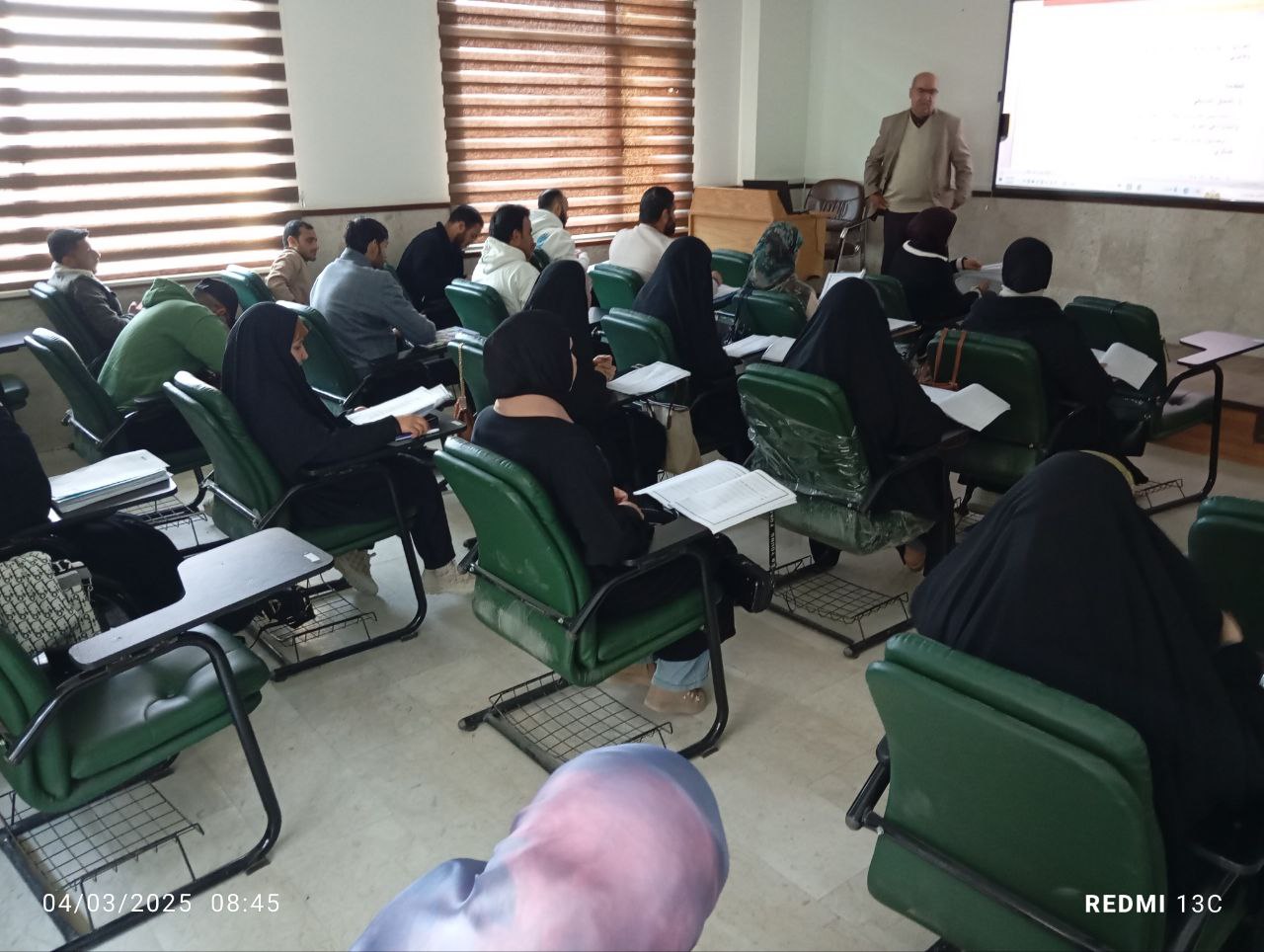 The College of Islamic Sciences held an academic symposium titled "The Crimes of the Ba'ath Party in Iraq: A Historical, Political, and Legal Analysis," presented by Dr. Iyad Karim and attended by a group of students.