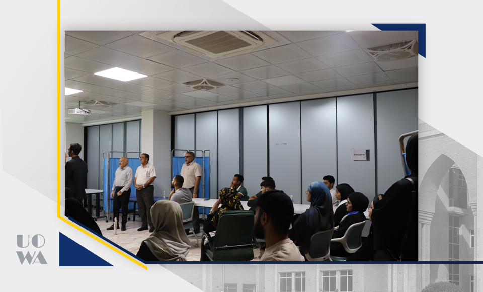 The College of Medicine at Warith al-Anbiya University (peace be upon him) organized a training workshop for its students, in preparation for providing medical services to pilgrims of Imam Hussein (peace be upon him) and Aba al-Fadl al-Abbas (peace be upon him) during the flag-changing ceremony of the two holy shrines on the first of Muharram. The workshop included lectures and practical training on first aid and emergency evacuation, in preparation for participation in this occasion, which witnesses a large public turnout.
