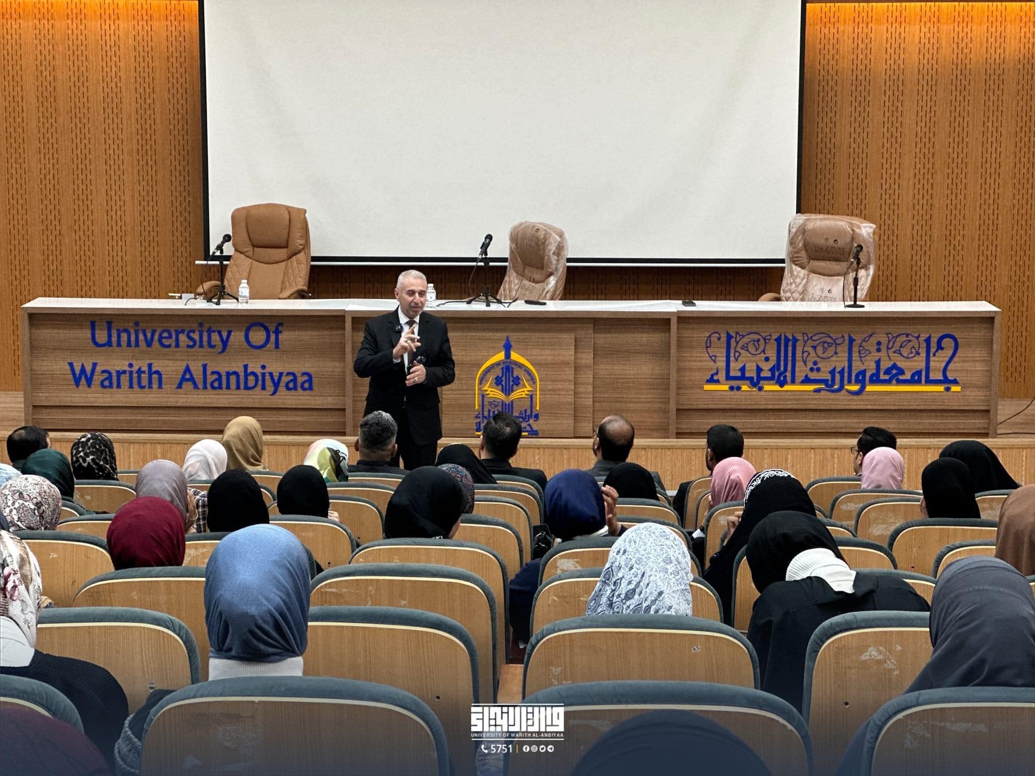 At the direction of the esteemed Dean of the College of Science, Assistant Professor Dr. Shaimaa Hussein Nofal, the College of Science at Warith Al-Anbiyaa University organized a cultural symposium titled "Building University Identity and Its Foundations," presented by the Dean of the College of Islamic Sciences, Assistant Professor Dr. Talal Al-Kamali. The symposium targeted the college students and highlighted the importance of university identity and its role in enhancing academic and cultural values among students.