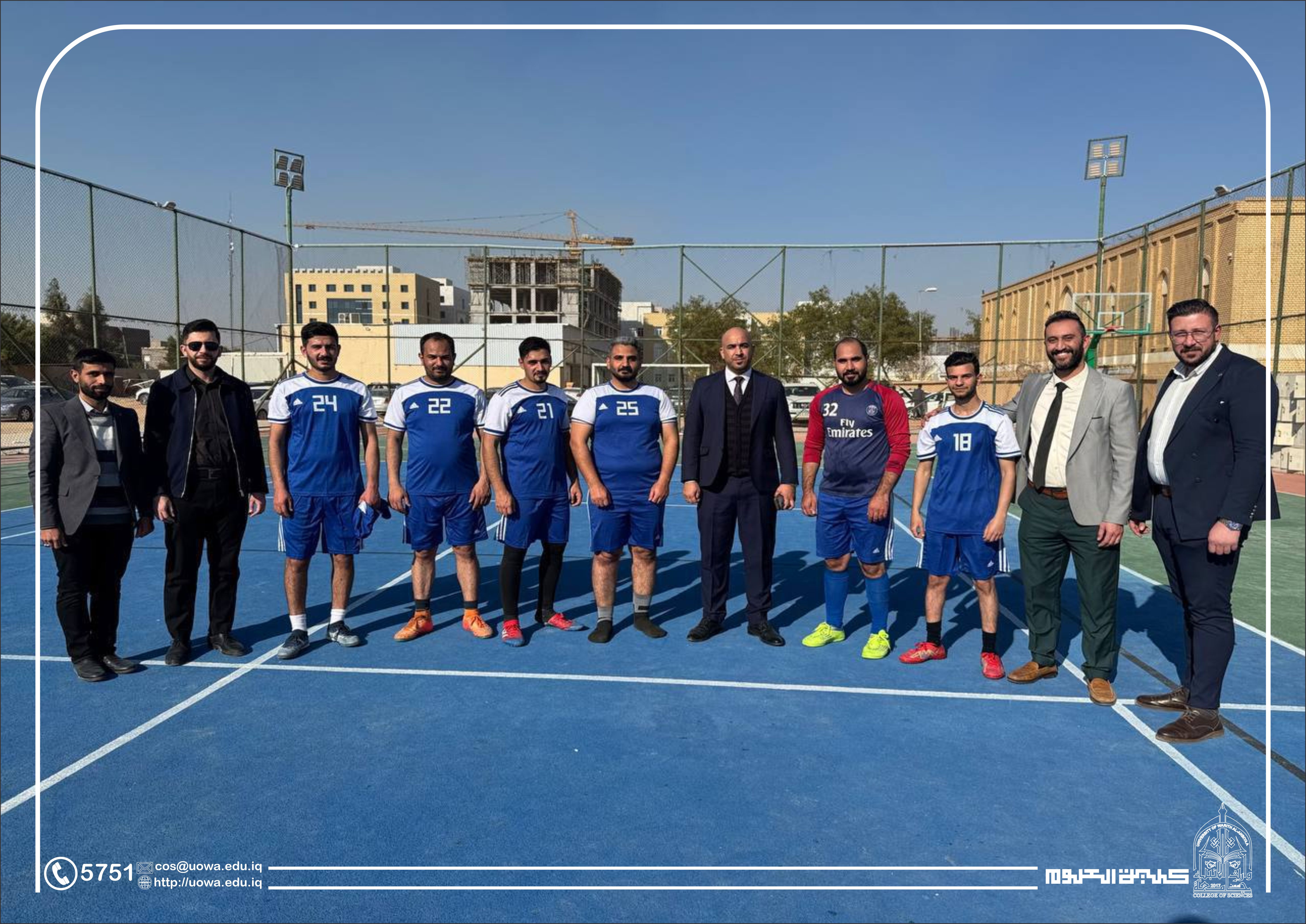 As part of the annual program of student and extracurricular activities, and under the patronage of the Dean of the College of Science (Dr. Shaimaa Hussein Nawfal), the college's Sports Activities Unit organized a friendly football match between a team of faculty members and a team of students.