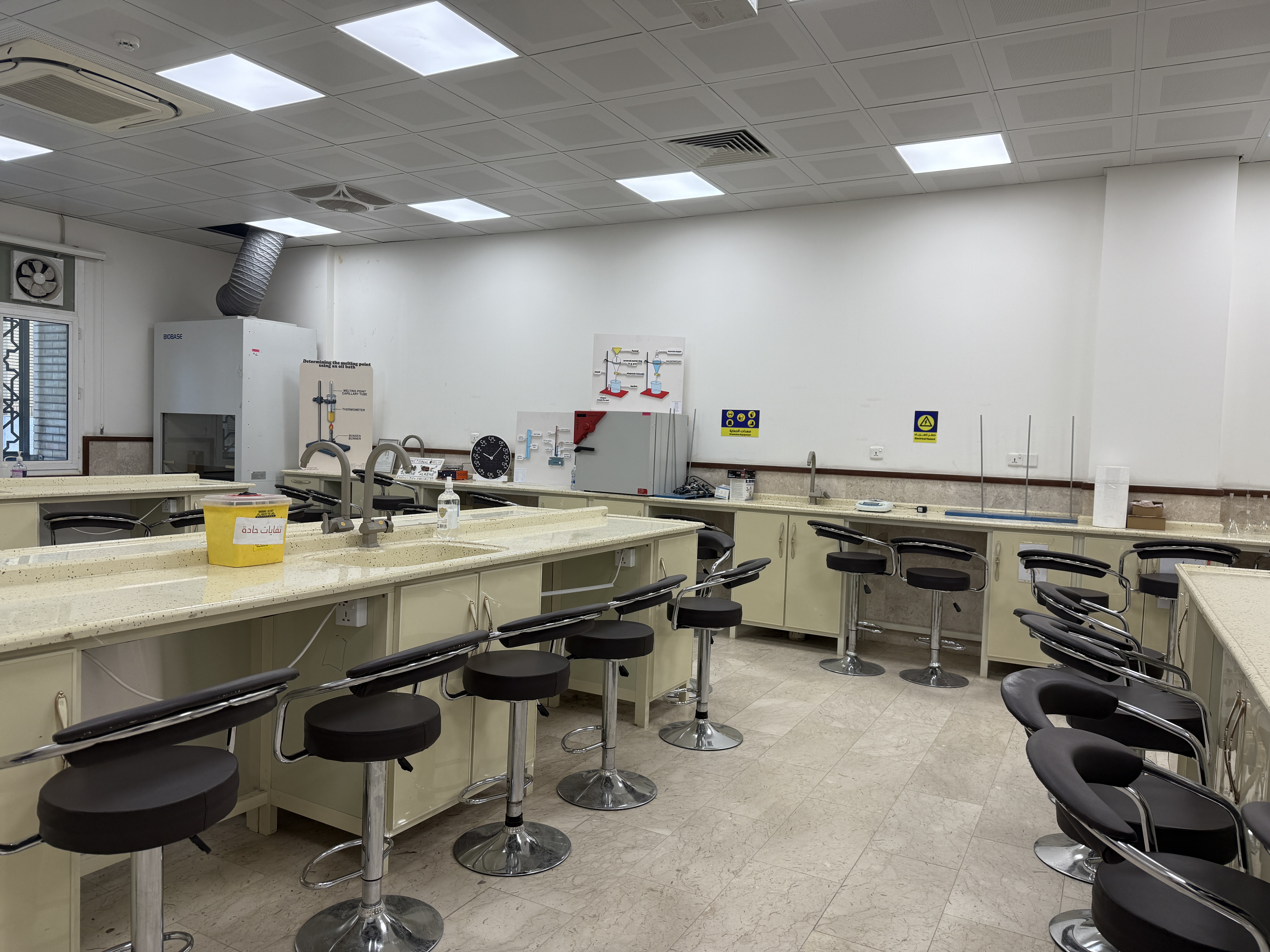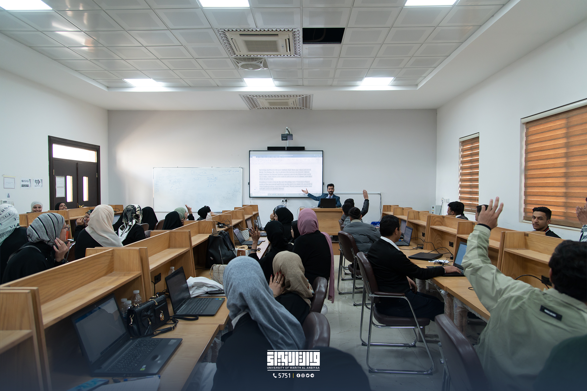 One of the laboratories of the College of Science, Warith Al-Anbiya University, contains 50 Labtop computers and educational tools such as a display screen and a data projector, in which students are trained to use computers and various programs with the aim of developing students’ skills.