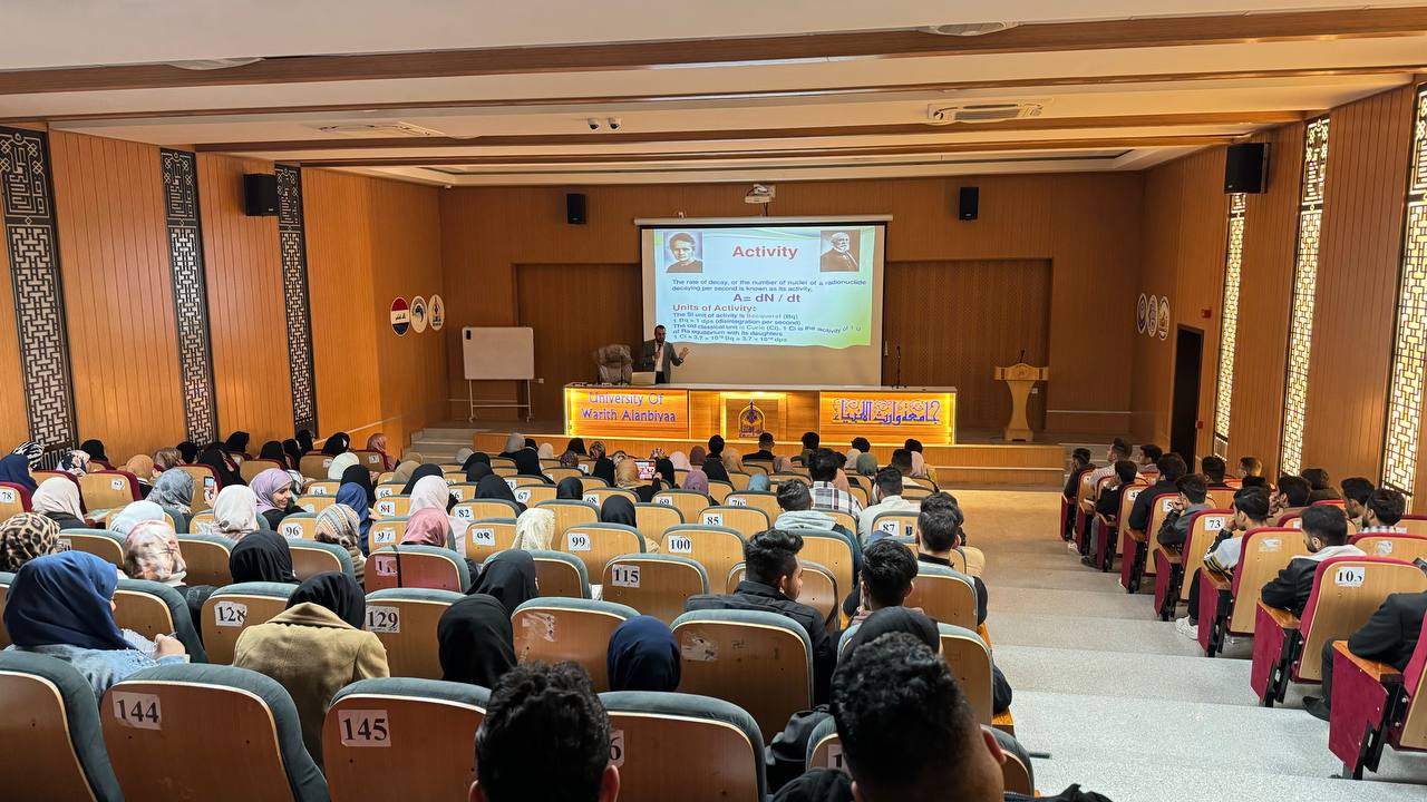 The College of Science at Warith al-Anbiya University (peace be upon him) held a workshop entitled “Radiation Quantities and Units” presented by Dr. Ahmed Musa to medical physics students.Where the workshop was aiming to  explain the measurement of radiation, how to control it, how to protect against it and how to use it in industrial and medical applications.