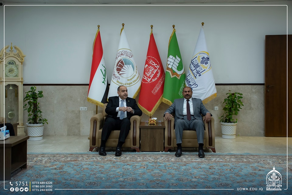 The delegation was received by Mr. Ibrahim Al-Hayawi, the President of the University, along with Dr. Munir Al-Daami, the head of the Academic Union Branch in Karbala, and Sheikh Rabaah Hussein Al-Rabaah, a legal expert.